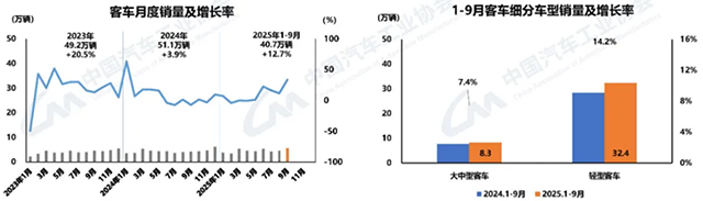 1-9月,商用车产销累计分别完成309.1万辆和311.7万辆,同比分别增长9.4%和7.8%。其中,货车产销分别完成268.7万辆和271万辆,同比分别增长8.9%和7.1%,货车增幅与商用车整体增幅一致;客车产销分别完成40.5万辆和40.7万辆,同比分别增长12.6%和12.7%,客车市场虽不及货车量大,但运营依然平稳,而且与时节旅游紧密相关。