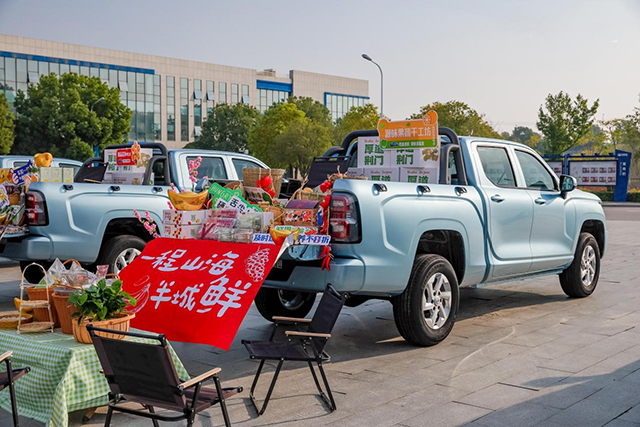 细节设计上,新车车姿抬高20mm,离地间隙最高达236mm,底盘通过性更强,车姿更威猛、更协调;低货台设计,货箱离地高度降低10mm,搬运货物更省力省时;更有同级唯一原厂货箱照明,无论是凌晨上货,还是晚市装卸运输,都保证货箱内清晰明亮,让装卸更安全高效。此外,自动挡全系标配10.25英寸高清大屏+倒车影像,流畅不卡顿;领航型搭载乘用车级车联网系统,可畅快体验智能语音、智能车控、智能导航、车载微信、抖音等服务功能。