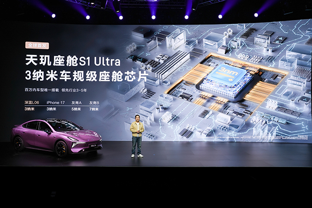 座舱新贵:百万内唯一3nm车规芯片,安兔兔跑分行业第一智能的驾驶体验,流畅交互是关键支撑。深蓝L06搭载全球首发天玑座舱S1 Ultra 3nm车规级座舱芯片,安兔兔车机跑分达到行业第一,远超第二名33%。新车还搭载行业首发四图融合实景车道级导航,建模更精准、画面更流畅、信息更全面,用户体验全面超越手机导航:高速路段下道指引,从容不迫;复杂路口指向精准,一目了然;掉头车道、潮汐车道提前预告,不走冤枉路。配合趣味互动、隧道主题等智慧功能,无论是跨城自驾还是市区通勤,深蓝L06都能让每一次出行都兼具高效与趣味,真正实现“车机不卡顿,导航更懂你”。