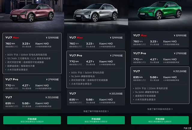 YU7上市首日订单就突破了28.9万辆,这数字听起来非常惊人,但首月实际交付只有6024辆。反差这么大的结果就是用户排队等车,而小米却优先生产交付高配版。显而易见,这些车型利润更高。