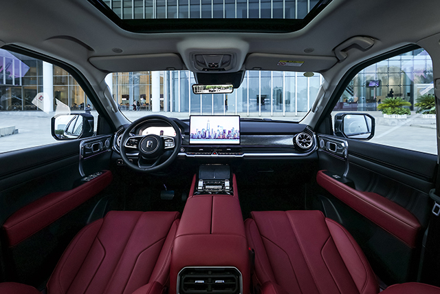 车内怀挡设计释放出双50W无线充电面板,15.6英寸2.5K中控屏搭载Coffee GPT大模型,搭配-6℃~50℃温控车载冰箱与头枕音响,将“冰箱、彩电、大沙发”的舒享体验融入硬派基因,让潮酷兼具实用与质感。