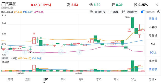 受此影响,港股汽车板块迎来强势拉升,广汽集团(02238.HK)以12.03%的涨幅领涨,A股同步盘中涨停。这一硬核技术的亮相,正是几天前2025广州车展上,广汽集团交出的“番禺行动”一周年转型答卷的生动注脚。