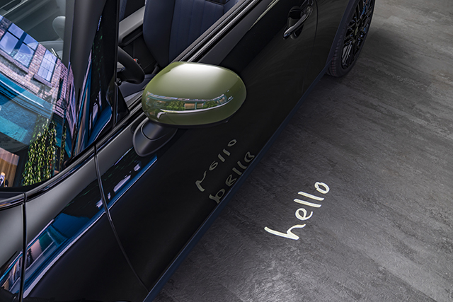 而MINI用户所见到的,却是另一个“平行世界”:低光环境下解锁车门,设计师手写的Hello光影被投向地面;迎宾踏板上有Paul Smith的座右铭“Every day is a new beginning”闪亮,方向盘6点位置是略作变化的彩色条纹织带“繁星点点”,Paul Smith的“幸运”兔子静静地卧在驾驶位的地垫上……
