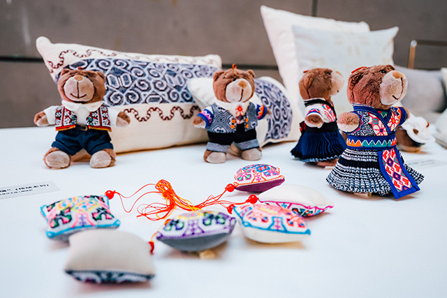 陶琼莉(屏边苗族刺绣代表性传承人)与王悦教授(清华大学美术学院)合作,开发了“织梦驭绣”非遗文创品系列,打造苗绣BAVA熊专属IP,以萌趣形象承载民族技艺,成为文化交流、联结传统与潮流的文化使者。