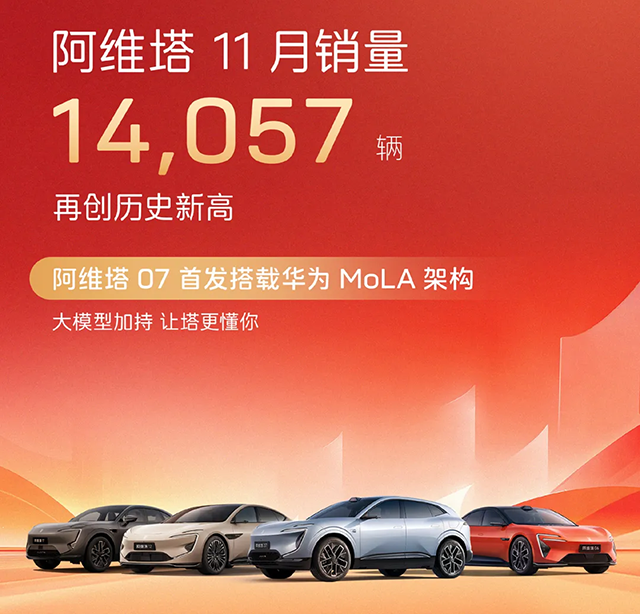 12月1日,阿维塔最新销量数据出炉:11月销量达14057辆,同比增长21.4%,不仅创下历史新高,更实现自3月以来连续9个月销量破万的稳健表现。