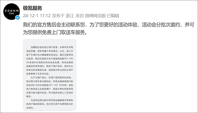 2024年初,先是在各大汽车论坛、极氪001的车主交流群里,不少WE86版车主反映:充电变慢、电池容量衰减较快、实际续航与官方宣传有差距,还有部分车主遇到车辆动力输出受限的情况。