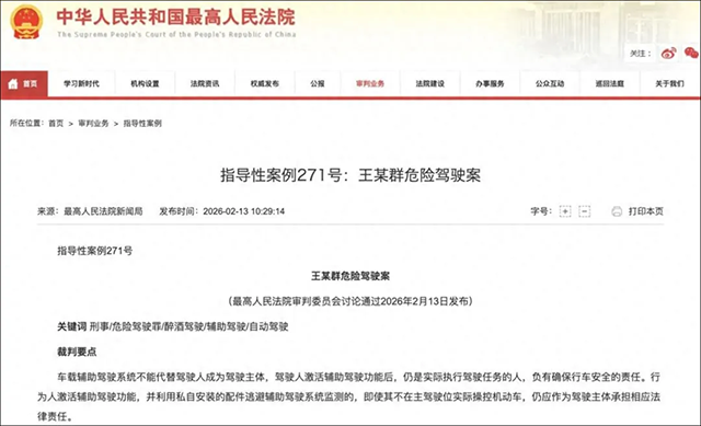 近日,最高人民法院发布的第271号指导性案例,直接推动L2级驾驶辅助进入垃圾时间。