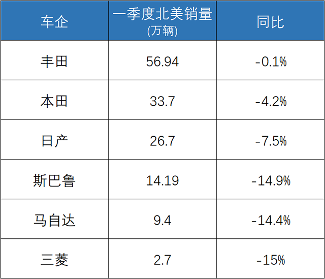 2026年第一季度,美国汽车市场迎来了一场结构性降温。曾在北美家用车市场扮演重要角色的日系品牌,首次出现了全阵营集体下滑的罕见局面。