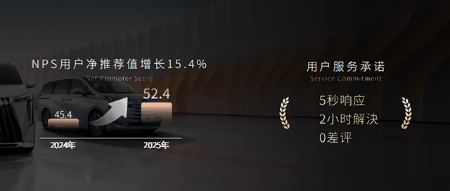考虑到传祺品牌的用户推荐值NPS在近三个月就从45.4跃升到了52.4,这里面不仅包含着产品质量的认可,也包含了对传祺服务质量的赞赏。传祺奉行对服务问题“5秒响应、2小时解决、0差评”。现实当中做得是否到位,市场口碑就预示着品牌的发展脉络。