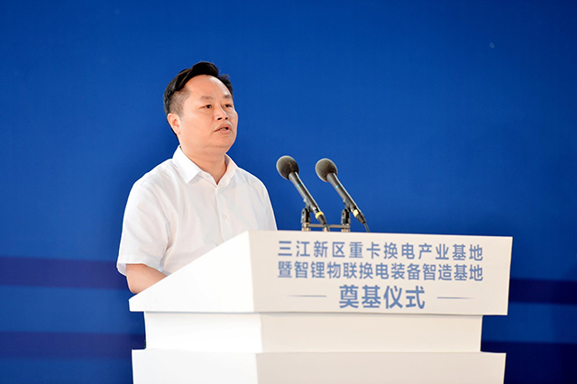 第三个议程,宜宾市委副书记、市长廖文彬先生宣布,三江新区重卡换电产业基地暨智锂物联换电装备智造基地现在开工!