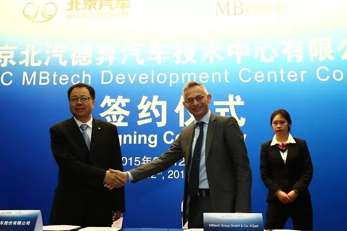 3月12日,北汽产业研发基地。北京汽车与MBtech(奔驰技术)合资成立的“北京北汽德奔汽车技术中心有限公司”(以下简称“北汽德奔”)正式签约。