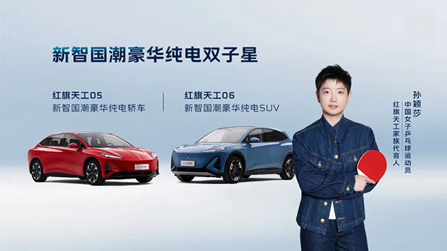 目前红旗天工已经连续推出了天工05、06、08等多款纯电车型,并且签约孙颖莎做代言人。红旗也是从这时期开始,逐渐走进新能源的主舞台。