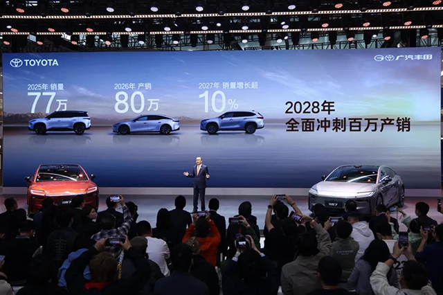 按照计划,随着电动化产品序列不断完善,预计2026年,广汽丰田的新能源销量占比将突破20%,2027年跨越40%大关,实现几何级增长。面向2026年,广汽丰田预计年产销将超过80万辆,到2027年实现10%以上的销量增长,2028年全面达成百万产销。