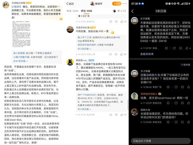 整场征名活动热度一路狂飙,网友讨论异常激烈,相关话题直接冲上微博热搜,评论区彻底被点燃,各方观点交锋不断、争执不下:有人说“H”已是哈弗子品牌的专属标识,不如干脆命名为“长城H10” ;有人站队品牌主线,坚定支持“哈弗H10”;还有大批网友脑洞全开,创意名字轮番刷屏,玩梗、调侃、认真分析交织在一起,全民参与的热情彻底被引爆,互动氛围火爆到极致。