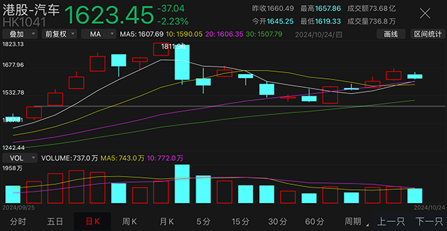 港股市场震荡下行,整车股普遍下跌,部分汽车零部件股受机器人概念推动大涨。