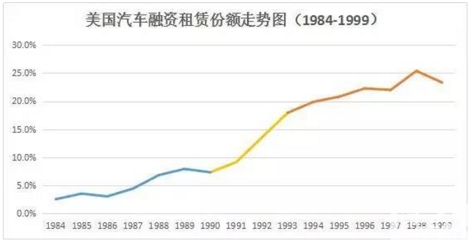 以美国市场为例,汽车融资租赁正逐渐成为一种客户喜欢,汽车厂家、经销商集团也大力支持的汽车销售方式。从1987年开始,汽车融资租赁就高速发展,尤其在1991年后,发展速度极为迅猛,不仅在汽车零售业中所占份额快速增长,同时带动美国汽车销售总量冲上2200万辆的历史高点,占据高达 24%的市场份额。
