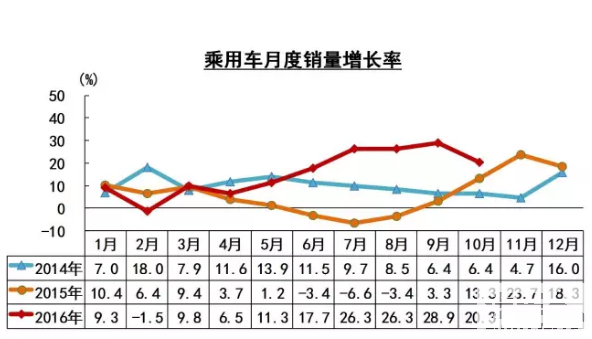 增幅下降原因有两点。其一是去年10月购置税优惠已经启动,所以基数较高,其实去年9月的基数已经很高,只是10月更高。其二就是今年9月份很多车企联合经销商以“购置税到期”为主题进行促销,透支了部分未来的短期需求,想必今年年底的几个月会受到影响。