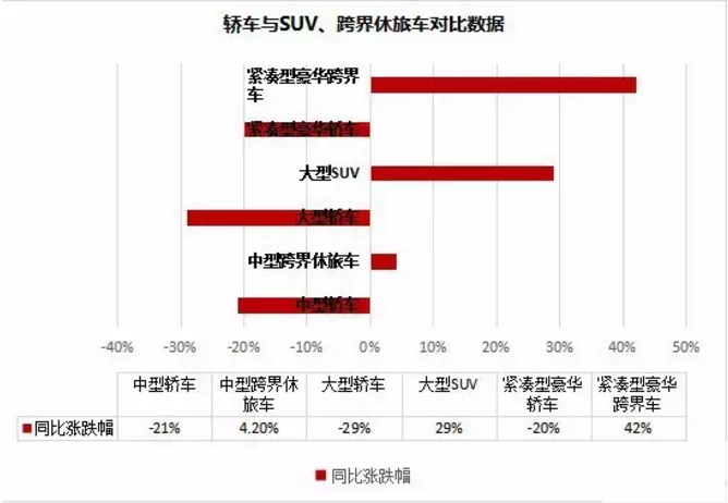 从上面可以看出,各类轿车的市场跌幅都超过20%,在轿车拖累销量的情况下,SUV、跨界休旅车却成为美国乘用车市场的新增长点,同时也是各集团的救命稻草。但是,SUV、跨界休旅车的救市并没有止住乘用车下跌的步伐,乘用车的跌幅还是两位数。